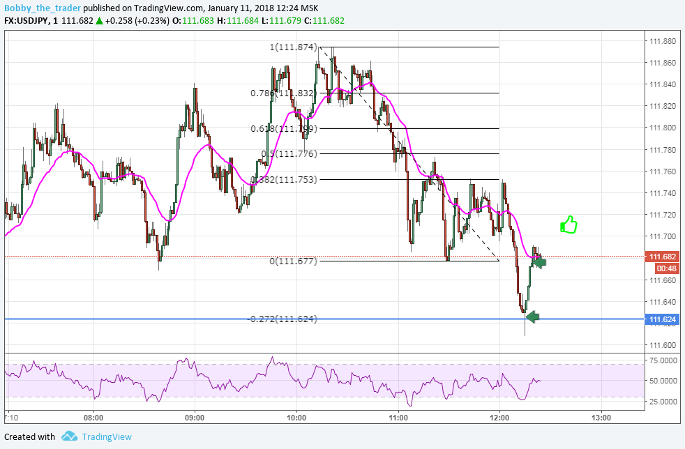 ▼ Уровень + рси в перепроданности + тренд + -0.272 после отработки -0.618