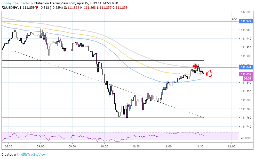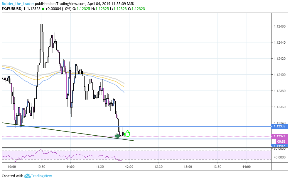 Пробитие линии тренда, небольшой откатик, замедление импульса