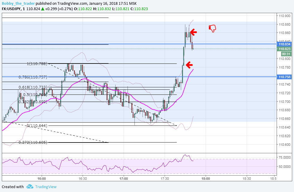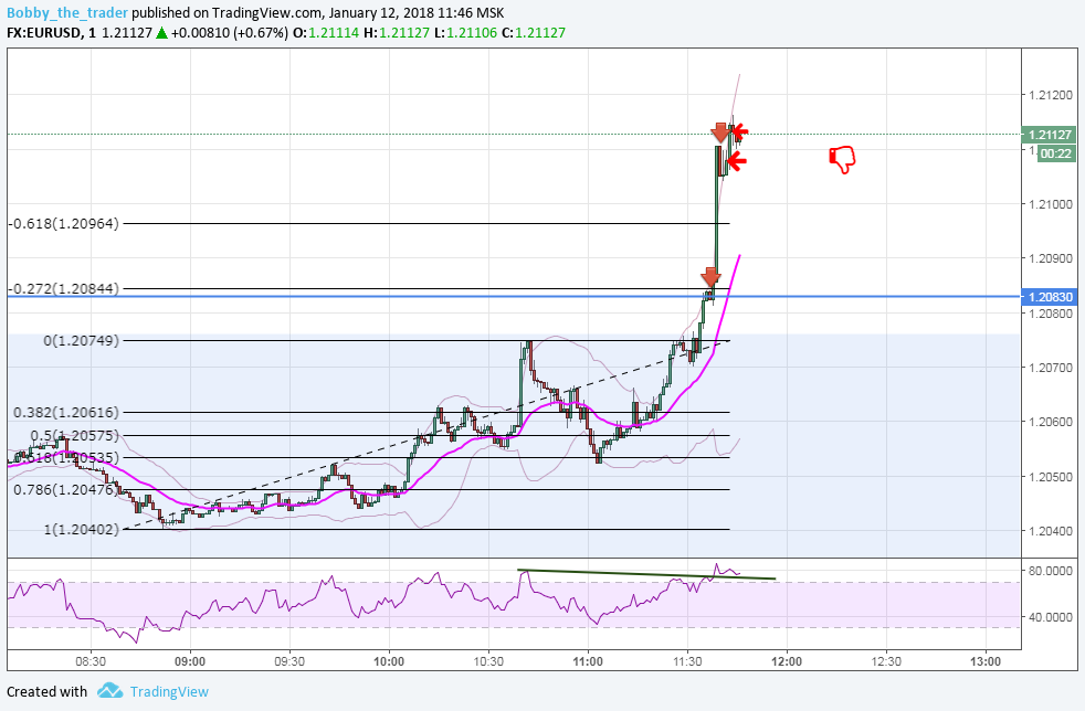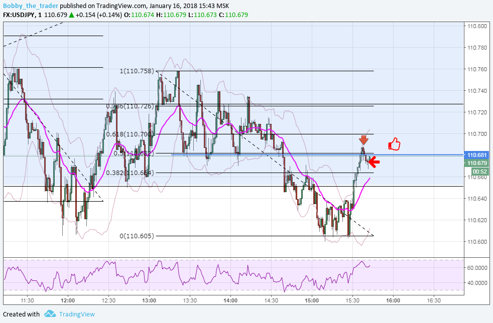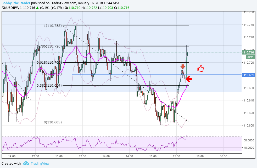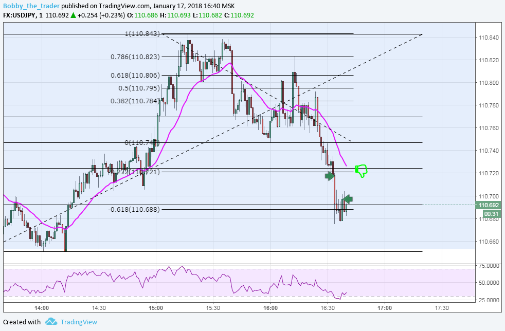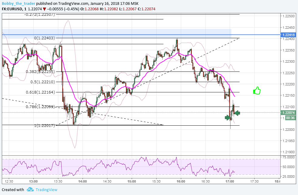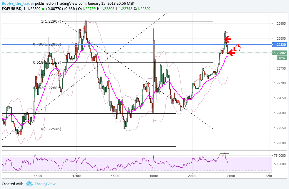 Прошло немного времени, я осознаю, что произошло. У нас пошел импульс от быков, я в это время был сконцентрировал на 0.786 и ждал там, т.к. я возложил свои ожидания на этот уровень, мне было не понятно, почему прет дальше, из-за этого я совершенно растерялся и не поверил в следующие хорошие уровни. В 1 минусе нет ничего страшного, такое бывает, не увидел импульс, вовремя не сообразил. Не хорошо вышло, что я не смог вовремя перестроиться на следующее движение и войти на минутках, ибо уровни были хороши. Учимся и еще раз учимся )
