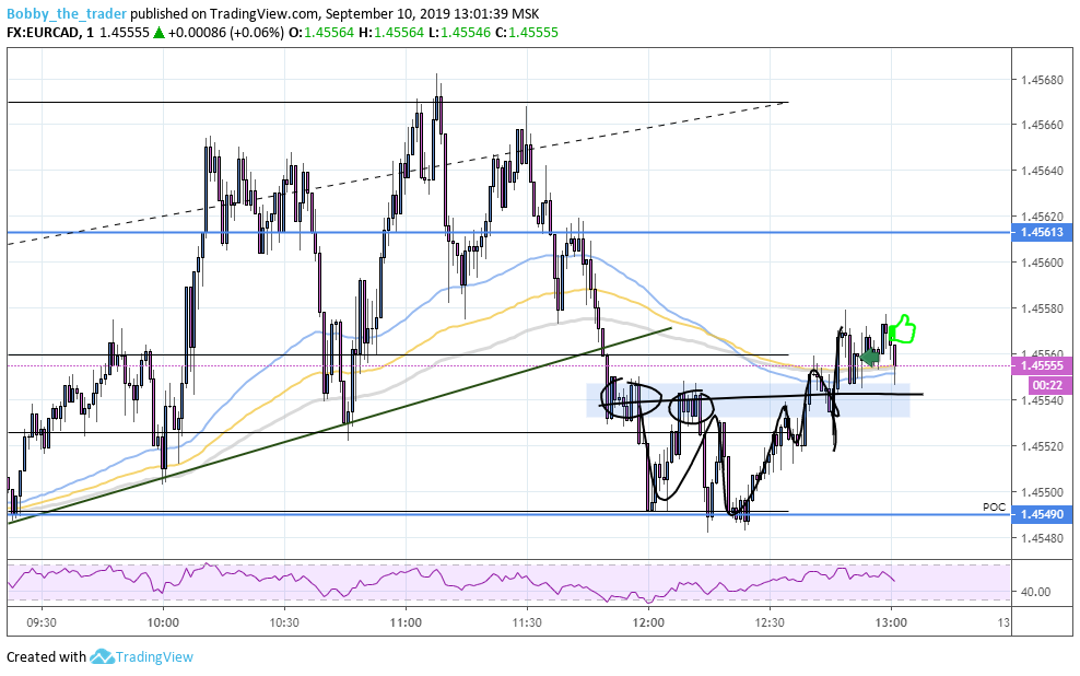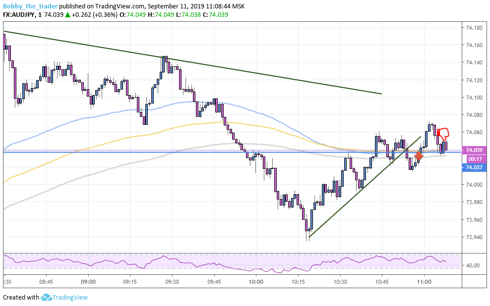 Понравился момент. Ложный пробой, вернулись обратно. Хотя хай не обновили, но реакцию на уровень дали. Нарисовали W. Вход скользнул маленько