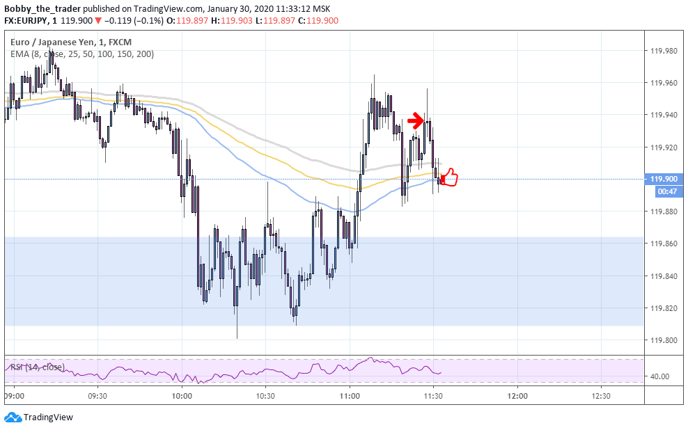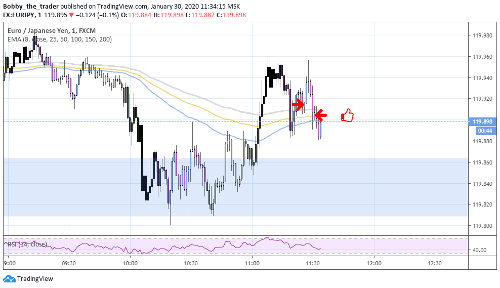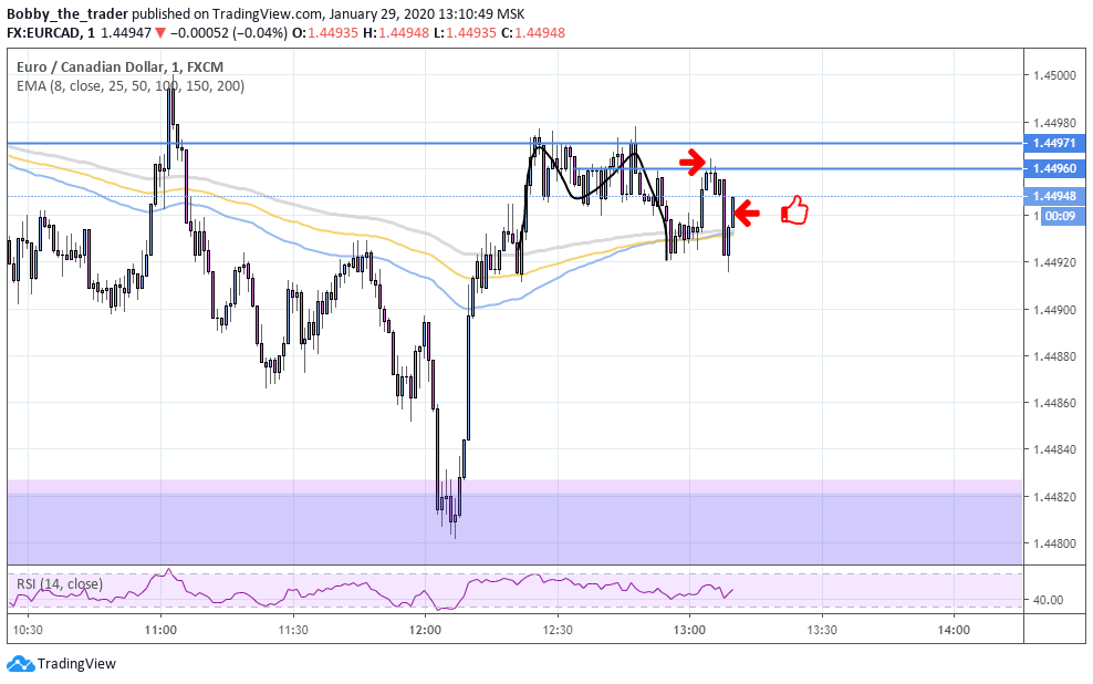 Зашел в одной ситуации два раза. Не молодец явно, хоть и первый трейд профитом закрылся также. Засчитаю это как один плюс