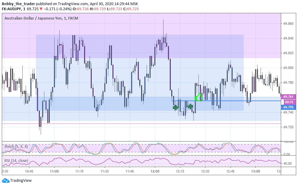 По поводу входов без сигналов. Входы как раз после реакций на уровни, однако, как я уже сказал, какого-то адекватного отката не последовало. По сути даже наторговок не было, где можно было бы пару пипсов в плюс за счет точки входа хорошей взять )